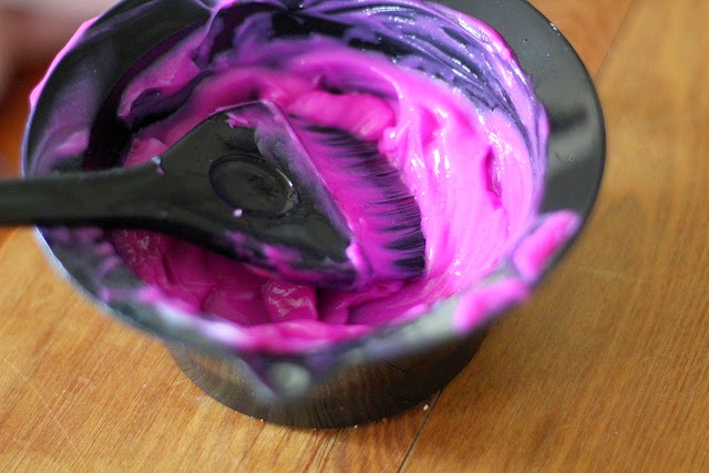 After choosing a shade of salon dye, this is where using professional hair color starts to be different from a box dye. Unlike box dyes, where the dye is squeezed into pre-measured developer, salon dye is emptied into a tinting bowl.